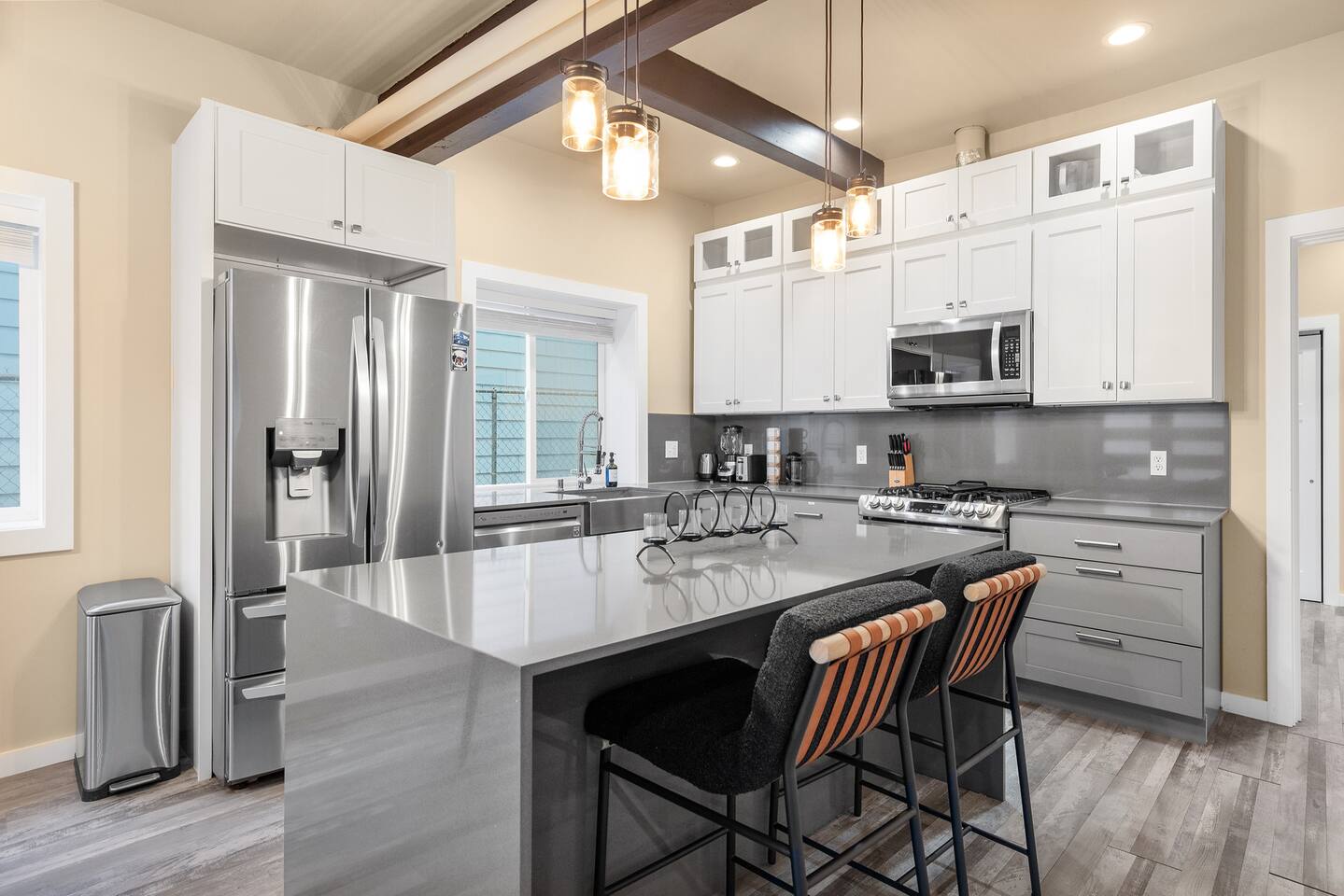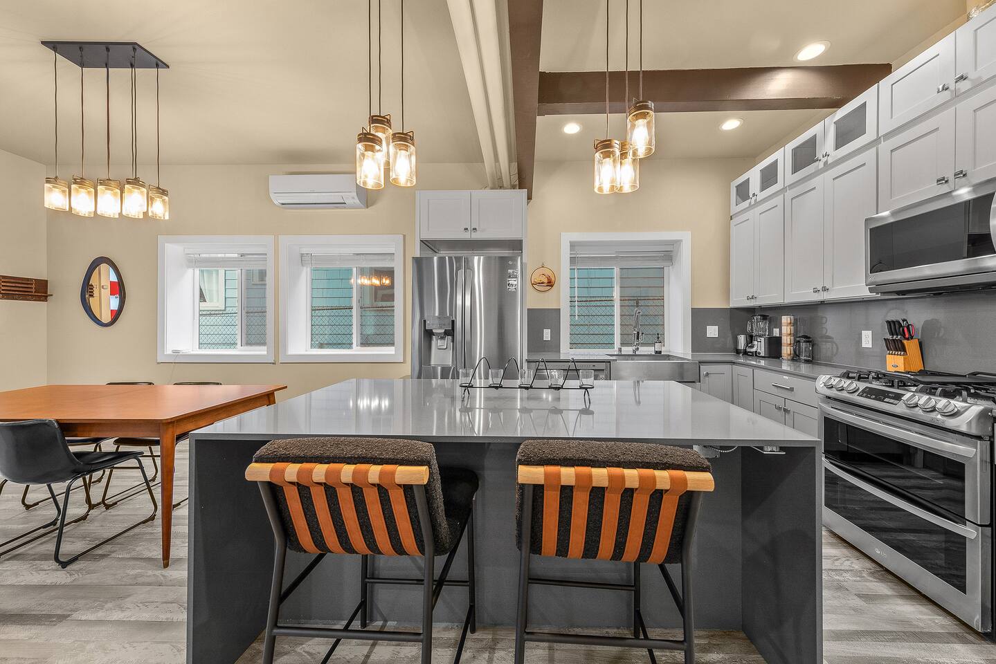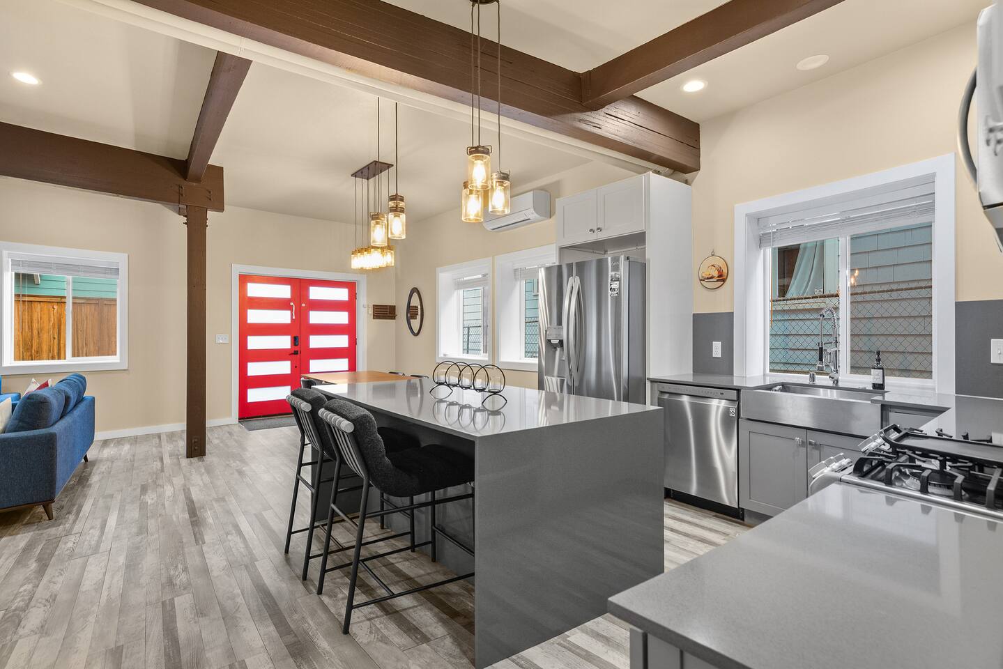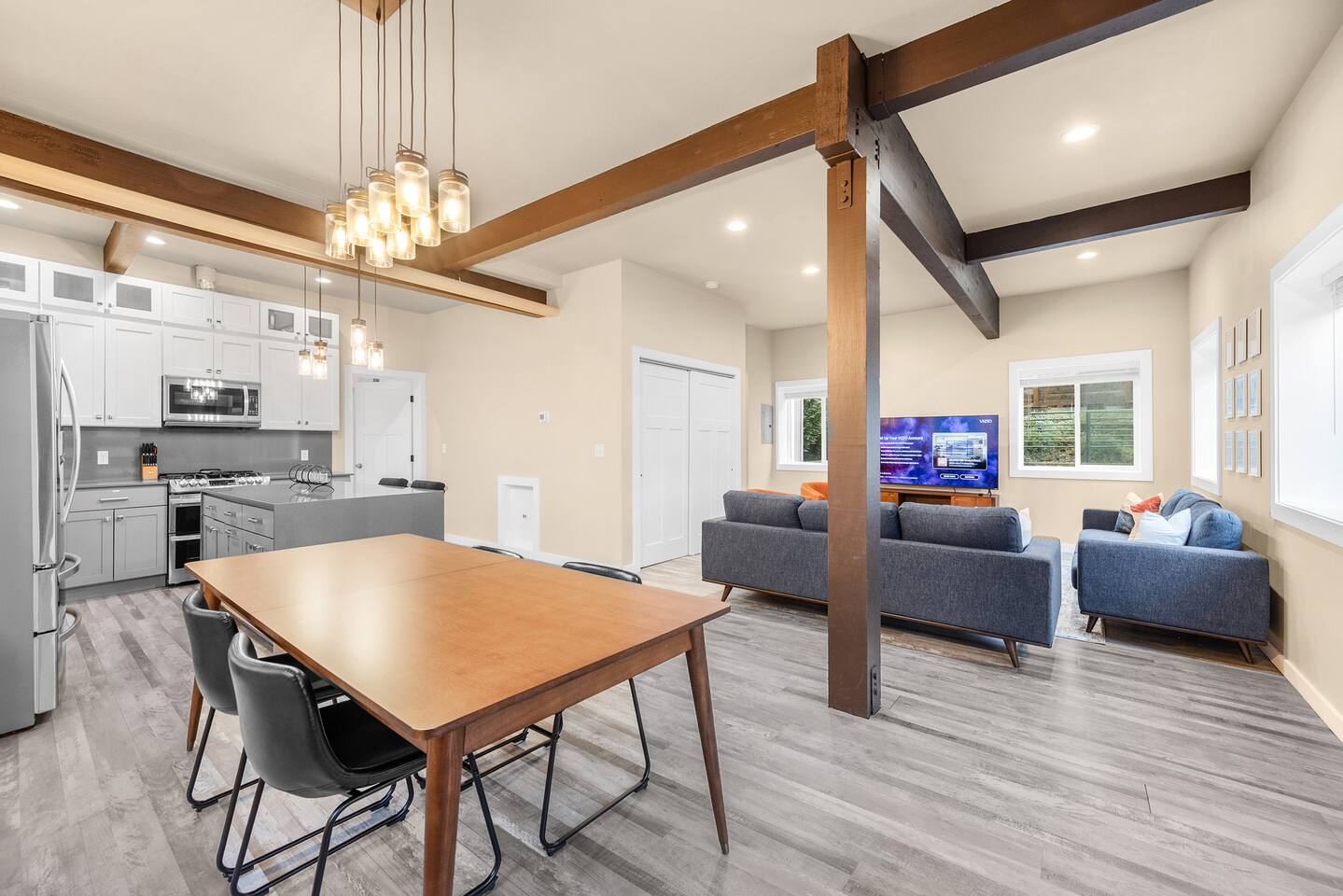 🛏️ Three spacious, well-appointed bedrooms designed for restful nights 🛁 Three clean and modern bathrooms, thoughtfully maintained 📺 70" 4K smart TV for immersive streaming and movie nights ✨ Bright, modern interiors with a welcoming open-concept layout ❄️ High-efficiency mini-split A/C in key spaces for personalized comfort 🍳 Fully equipped kitchen with everything needed for cooking and dining in 🌐 High-speed Wi-Fi, perfect for remote work or entertainment 🚗 Minutes from Seattle’s top attractions by car 🚉 Excellent access to buses and light rail, making car-free travel simple