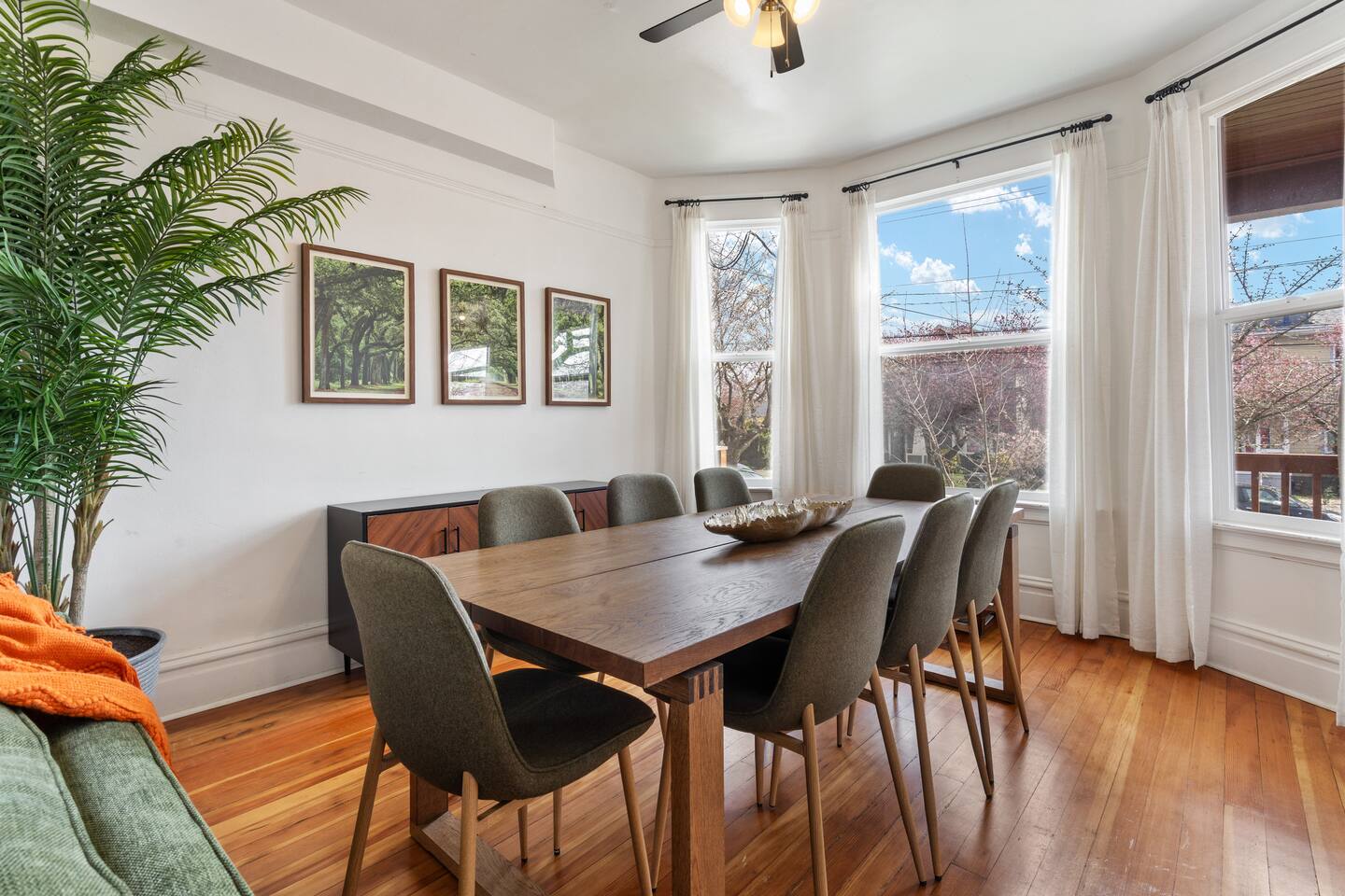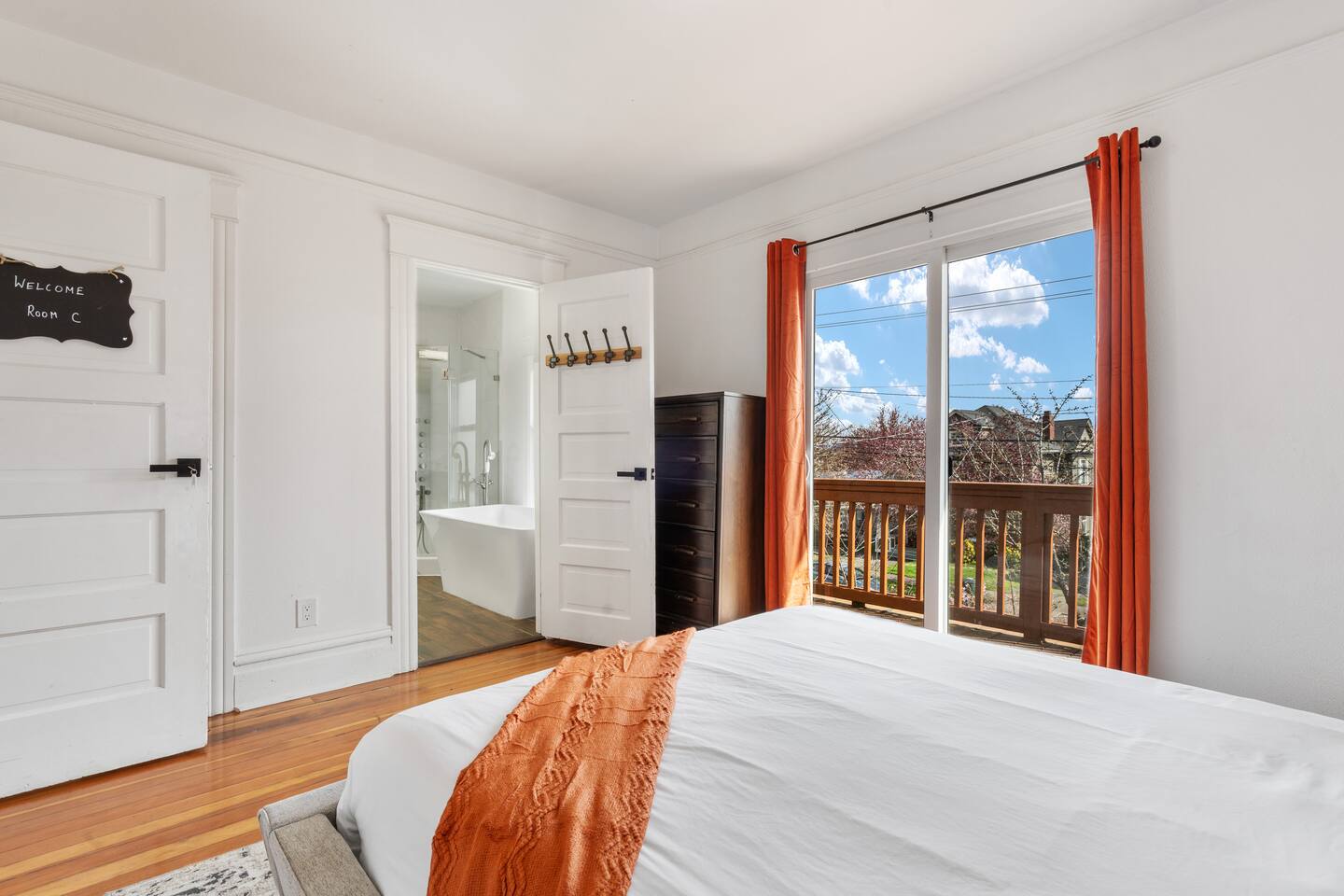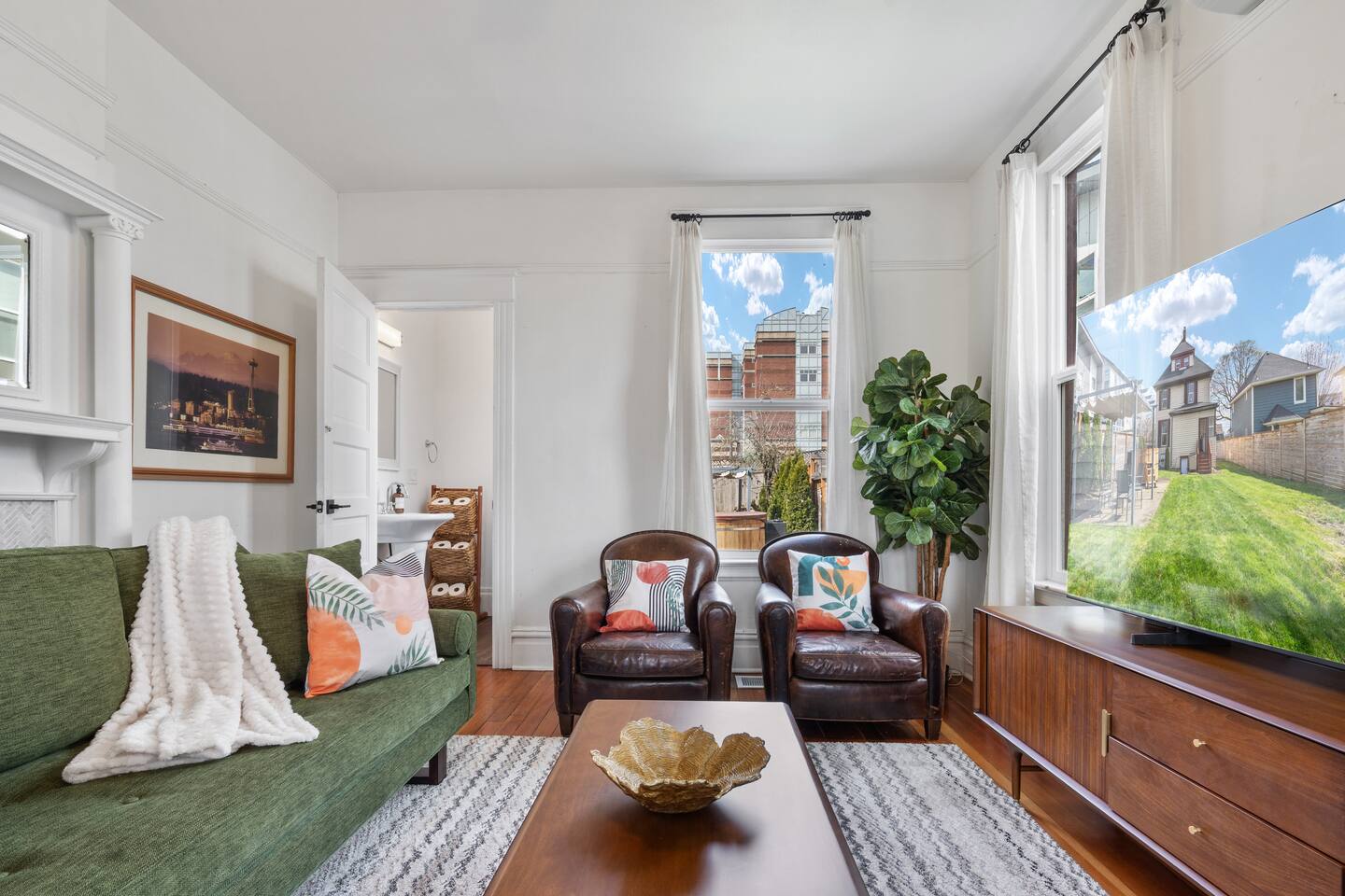 Cedar House, perched atop a hill in the Central District, is just a short walk from Capitol Hill. This expansive 1901 built 2,500 sqft home is ideal for a family retreat or a gathering with friends. The standout feature is the custom-built cedar hot tub, which comfortably accommodates up to 10 people. 🌿 Spacious Outdoor Retreat Step outside into a lush, fenced garden — perfect for morning coffee, yoga, or evening cocktails under the stars. There’s plenty of room for outdoor dining, lawn games, or simply soaking in the serenity of this hilltop escape. 🛁 Custom Cedar Hot Tub The star of the show — a handcrafted cedar hot tub that comfortably fits up to 10 guests. Sink into soothing warmth surrounded by fresh air and greenery — your own private spa experience in the heart of Seattle. 🛋️ Inviting Living Spaces Inside, unwind in the cozy living area with plush seating and natural light. It’s the perfect spot for movie nights, game chats, or planning the next day’s adventures. 🍳 Modern Kitchen & Dining Enjoy cooking in the fully equipped kitchen, complete with modern appliances and all the essentials for home-cooked meals. Gather around the dining table for shared stories and local takeout feasts. 🛏️ Restful Bedrooms Three spacious bedrooms provide peaceful retreats, featuring comfortable beds, soft linens, and thoughtful touches to ensure everyone sleeps soundly.