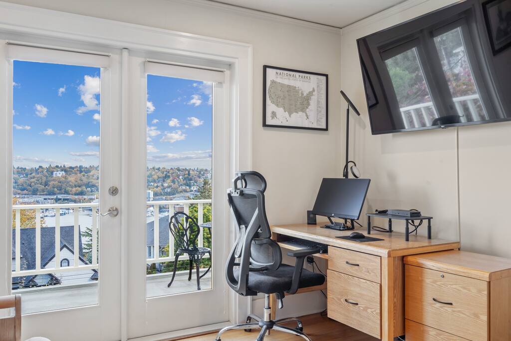 Your Property ποΈ 2 Bedrooms β Comfortable and cozy sleeping spaces π 2.5 Bathrooms β Fresh towels, essentials, and a mix of shower and tub options for your convenience. π Front Deck with Lake Views β Relax with your morning coffee or evening wine while watching boats glide across Lake Union. π Space Needle Views β Enjoy iconic Seattle skyline views (including the Space Needle!) from inside the home. π½οΈ Fully Equipped Kitchen β Everything you need to cook at home: cookware, dishes, utensils, coffee maker, and more. πΆ Fast Wi-Fi + Smart TV β Stay connected and stream your favorite shows. π§βπ»Dedicated office room β Stay connected or work from home. π§Ί Washer & Dryer β In-unit laundry for longer stays or quick refreshes. π Prime Queen Anne Location β Walk or drive to top Seattle attractions like the Space Needle, Seattle Center, Pike Place Market, and more. π³ Quiet β Peaceful surroundings with urban convenience.