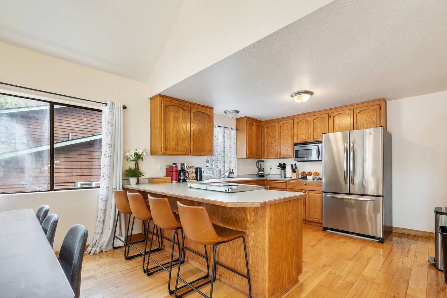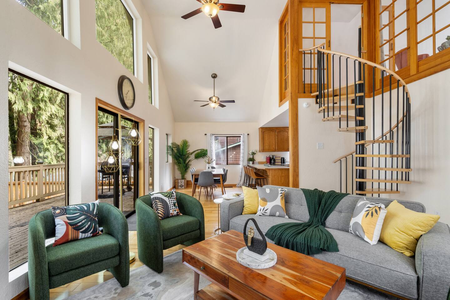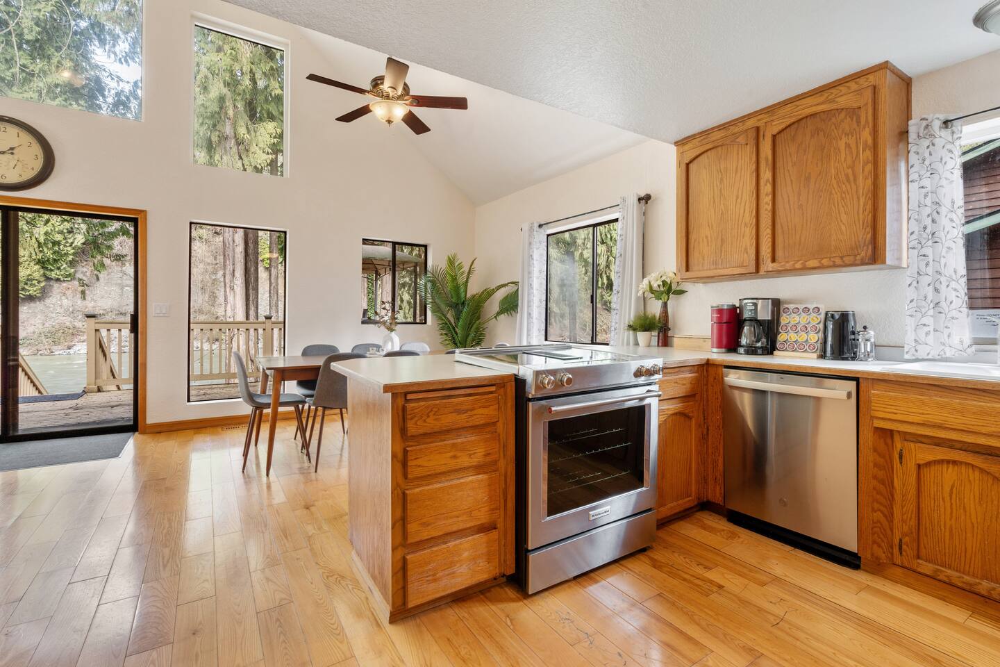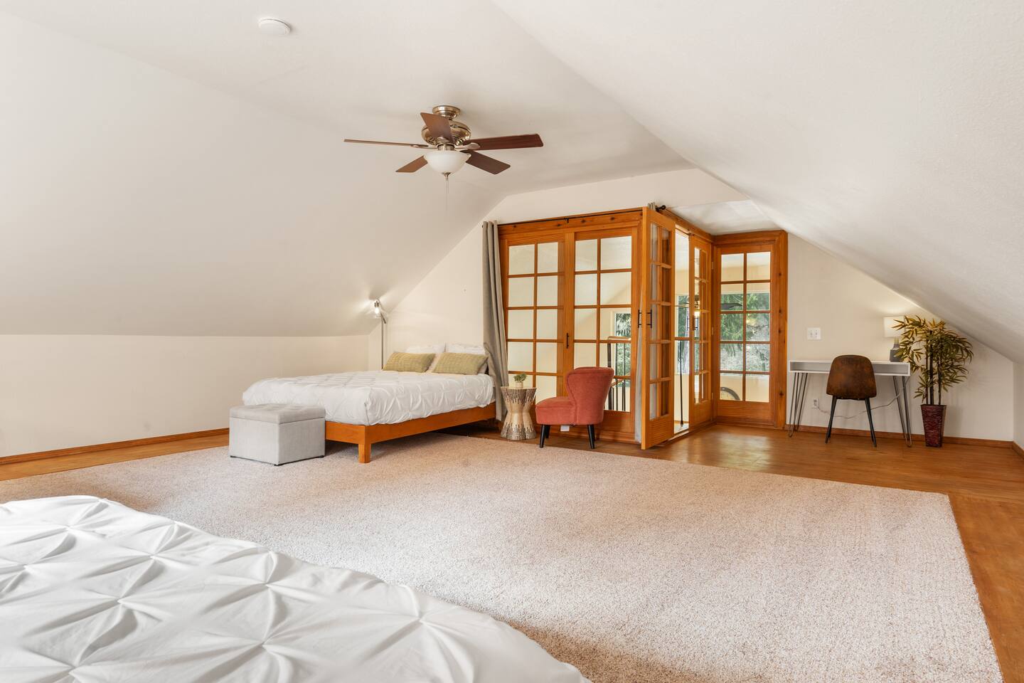 The river flows through the backyard with a cedar hot tub overlooking it. The entrance opens to the open kitchen concept tall ceiling living room with sliding doors leading to the deck and hot tub overlooking the river, all illuminated by hanging lights. This entrance has 3 bedrooms and 2 baths. The basement with its separated entrance has a karaoke setup, dancing pod area, bar, a movie theater room and a cedar sauna. This floor has one bedroom and a half bath. The kitchen is well-appointed with every essential, and there's space to dine and hang out at the breakfast bar and the window-side table. The house has 4 bedrooms and 2.5 bathrooms. There are a total of 6 queen beds. House is 5 mins from the town of Granite falls and 20 mins from the Mt. Baker-Snoqualmie National Forest. In the cascades you will find some of the best hiking and most beautiful natural features that Washington has to offer. Some prominent sites include: Gothic Basin, Big Four Ice Caves, Mt. Pilchuck Fire Lookout, Lake Twenty-Two, and Heather Lake. Other outdoor recreation activities in the area are endless as well – hiking, whitewater kayaking, river tubing, backcountry skiing, fishing, and more. Parking : There is a huge front yard and driveway for all your parking needs. You can even park multiple RV's if you want. Please do NOT try parking under the deck. Its not tall enough.