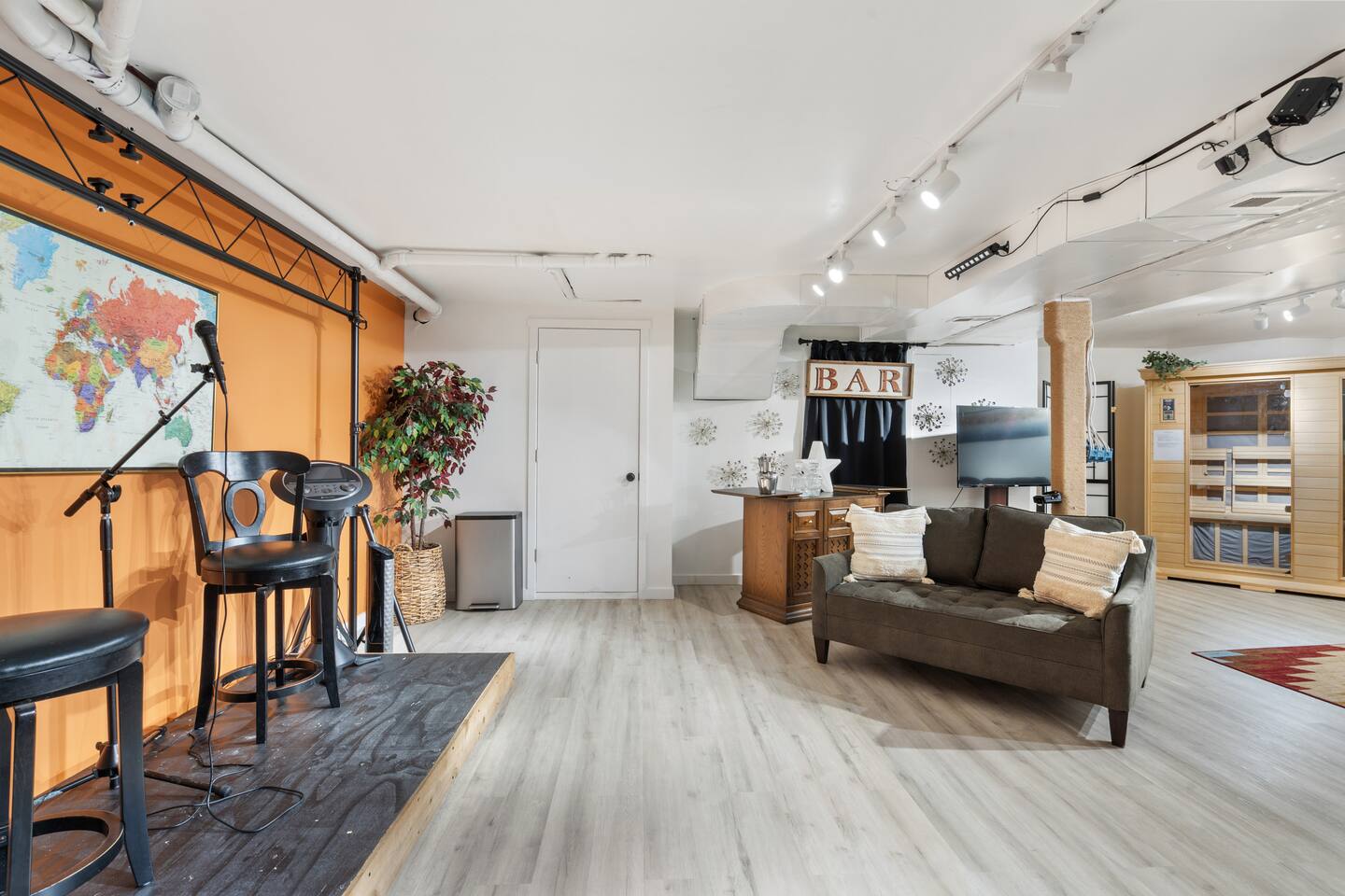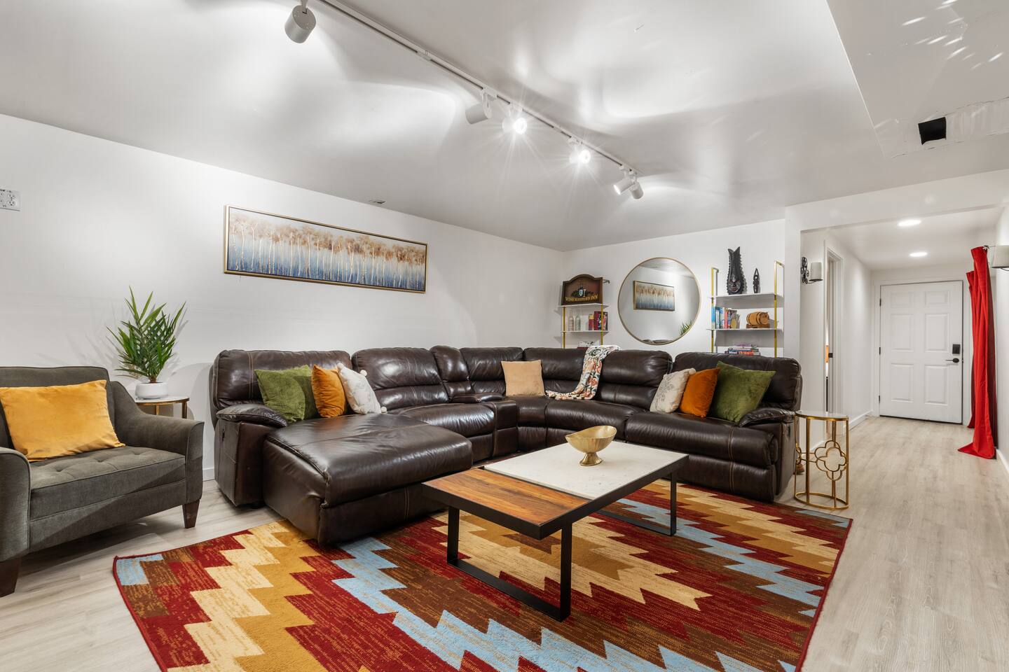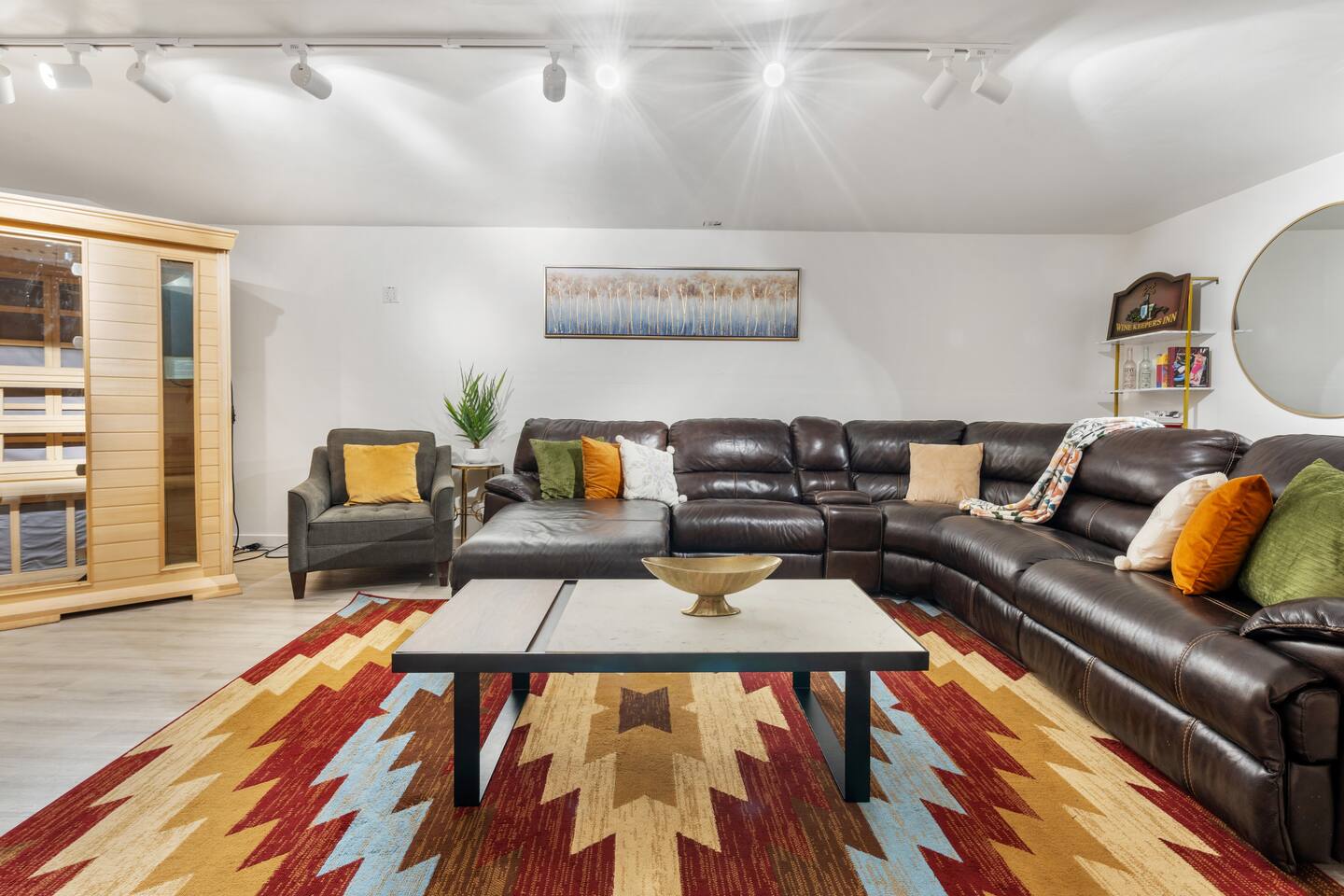 The sauna, movie theatre and one bedroom is on a different floor with a different entrance. This is in the basement. The house is an older home with all the modern amenities and furnishings. It has older cabinets and architecture. 3rd floor (one bedroom with 3 beds) is only accessible via the spiral staircase. This is a strictly NO FIREWORKS home. Any use of fireworks anywhere near the house will result in a $1000 fine.