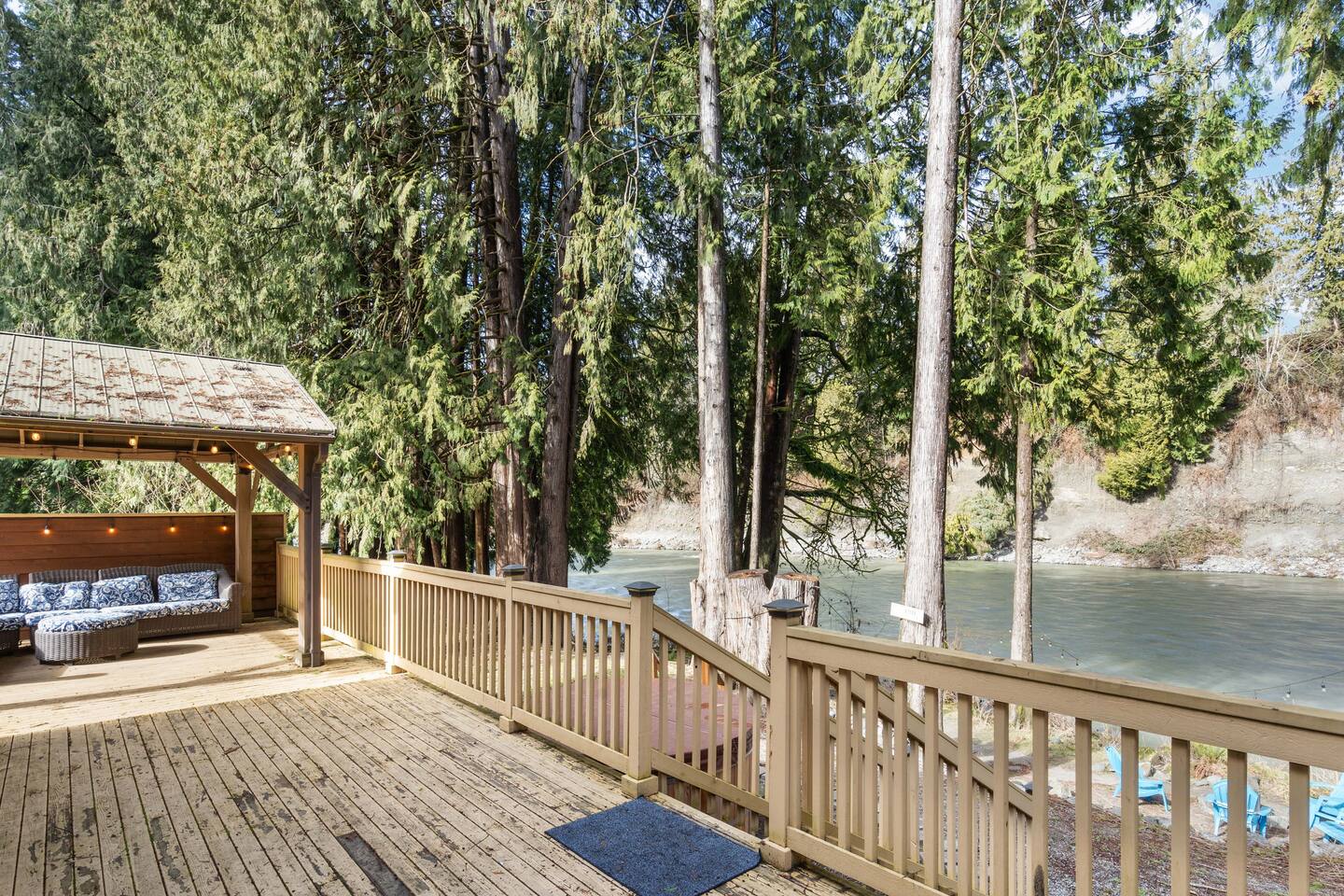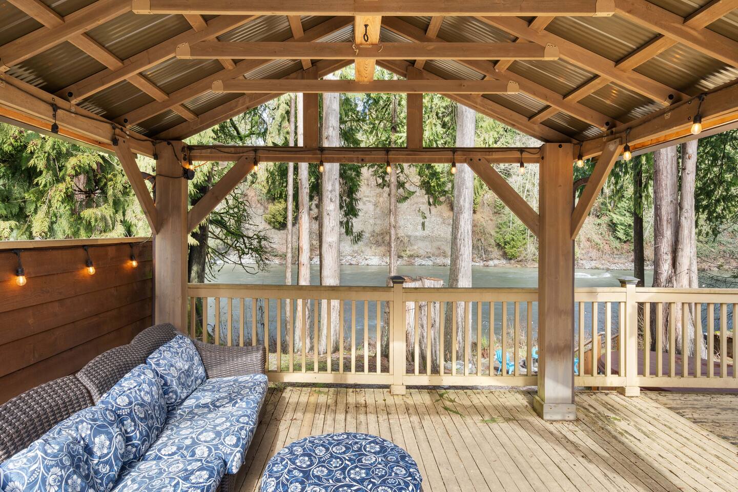 Escape to tranquility at this picturesque riverfront home, nestled on the banks of the Stillaguamish River. With the river flowing right through the backyard, this home offers the perfect blend of nature and luxury. Wake up to the soothing sounds of the water and enjoy your morning coffee with breathtaking views. Whether you are relaxing by the fire on the beach or sitting in the cedar hot tub or relaxing in the sauna the river sounds will help relax you. This is a true PNW oasis.