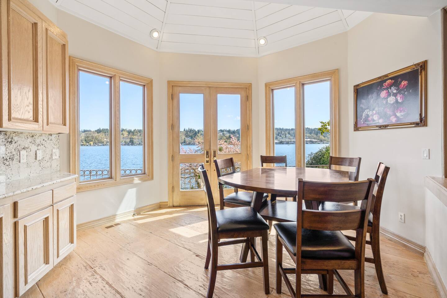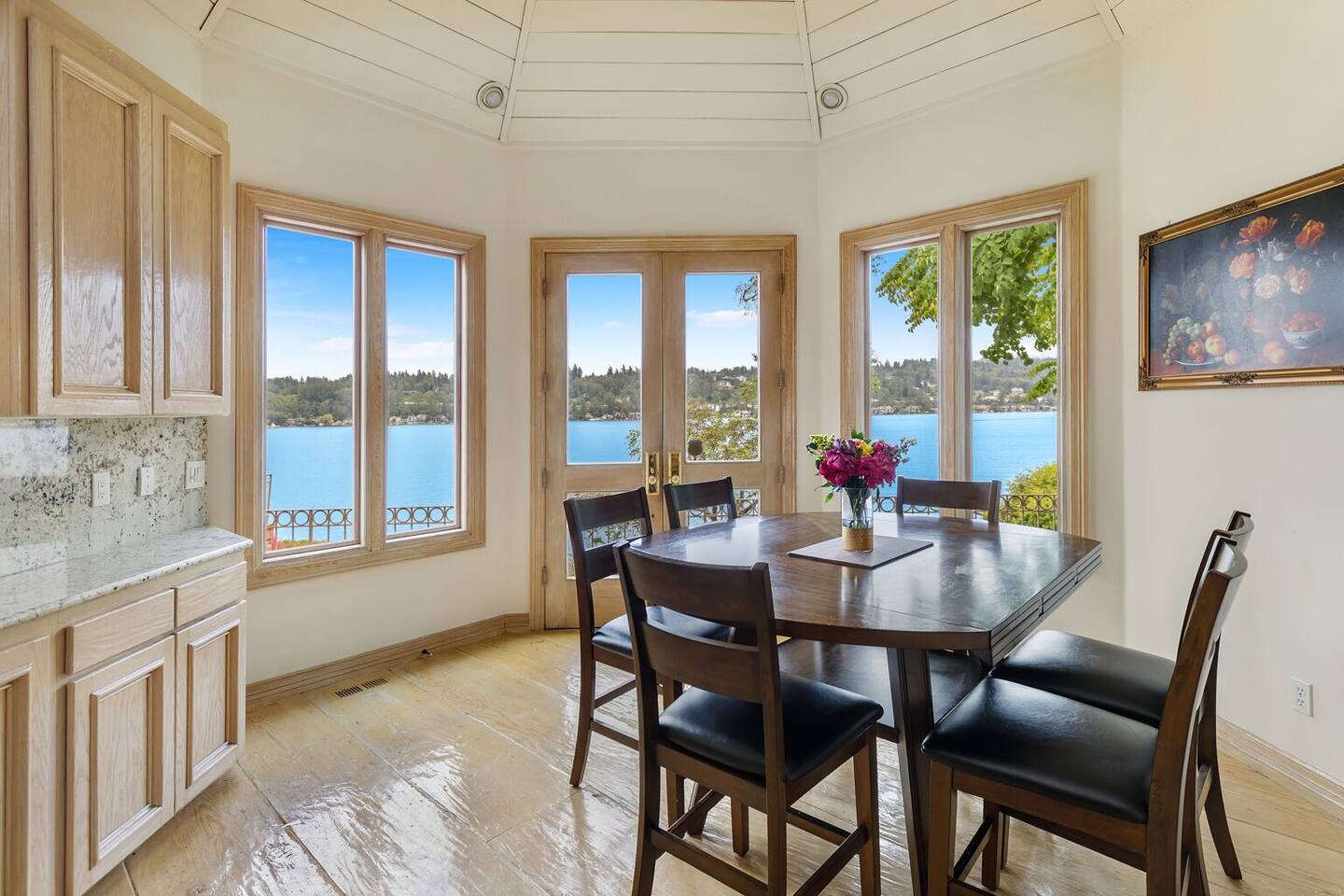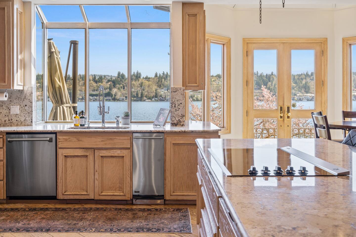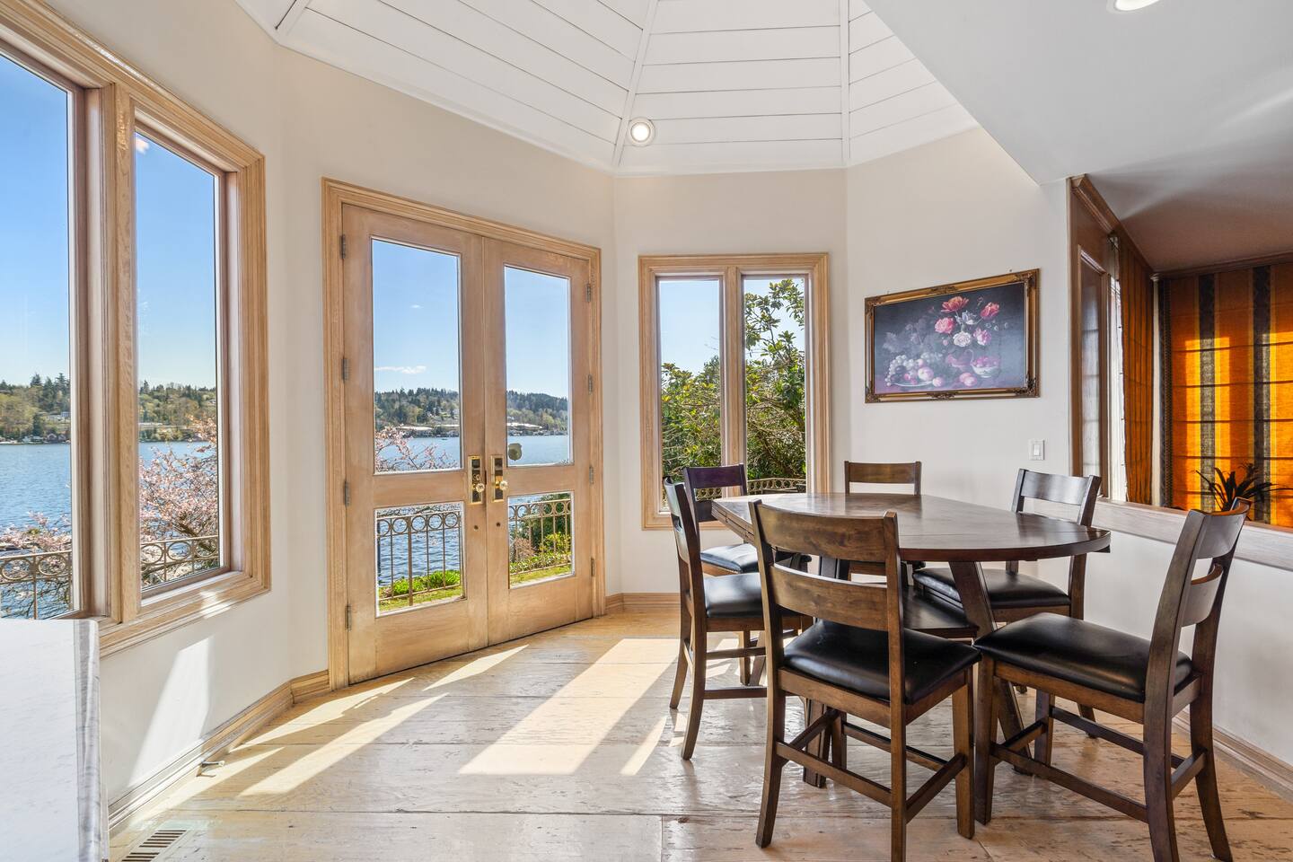 This is a strictly NO EVENTS and NO INDOOR SMOKING property. This home is set on the quiet and serene Mercer Island, with homes on either side of the property. Any evidence of smoking is a $2000 fine. Every unreported guest is charged $500 per person per night.