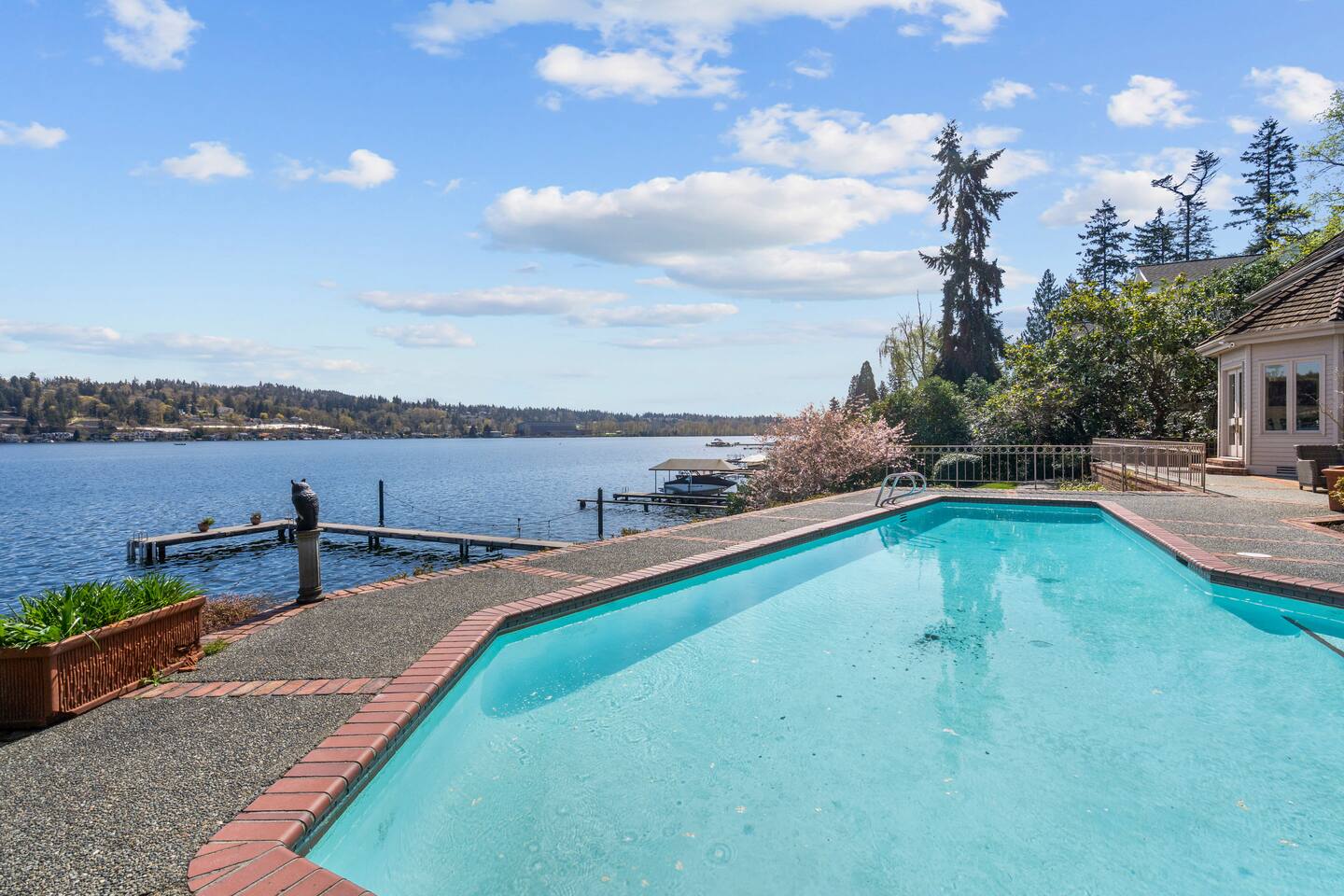 🌊 Breathtaking LAKE WA Waterfront Views Immerse yourself in panoramic lake views, perfect for watching 🌅 sunrises and 🌇 sunsets. 🏊♀️ Private Pool & Hot Tub Enjoy ultimate relaxation with a pristine private pool and a luxurious hot tub overlooking the water. 💦🛁 🚤 Private Dock Take advantage of your own dock—ideal for boating, kayaking, or simply soaking in the lakefront vibes. 🛶🌅 🛋️ Expansive Living Spaces This mansion features open, airy spaces designed for both comfort & elegance. Perfect for entertaining or relaxing with family & friends. 🎱 Includes a pool table for added fun! 👨🍳 Gourmet Kitchen Cook like a pro in the fully equipped kitchen with high-end appliances, an expansive island, and plenty of prep space. 🍳🍽️ 🛏️ Elegant Bedrooms & Bathrooms Each bedroom is a peaceful retreat, featuring plush bedding and spacious layouts. 🛁 Luxe bathrooms include spa-like features for a truly relaxing stay. 🍷 Outdoor Entertaining Enjoy beautifully landscaped grounds with a large patio, perfect for al fresco dining, lounging, or simply soaking up the peaceful surroundings. 🌳🍽️🌅 📍 Prime Location Just a short drive to downtown Seattle, this lakeside escape offers both serenity and city access. 🌆 Explore world-class dining, shopping 🛍️, and attractions, then return to your private haven by the water. 🌊🌲 🛌 Sleeping Arrangements 4 bedrooms: 🛏️ 3 King Beds 🛏️ 1 Full Bed 🛏️ 1 Single Bed 🛋️ 2 Pull-Out Couches 🛁 4.5 Bathrooms — Perfect for families & couples!